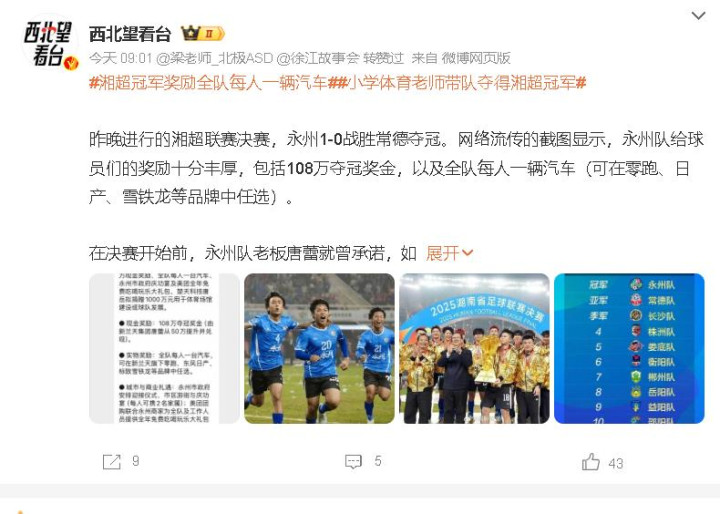 当湘超冠军奖励全队每东说念主一辆汽车的音问刷屏时体育录像/图片,家门口的苏超早已掀翻了一场更跋扈的“东说念主才争夺战”,税后两万五的月薪、编制迷惑、中超梯队“探子”扎堆……这场由“十三太保”主导的芳华风暴,正在改写中国足球的底层逻辑!如何看这场抢东说念主大战?